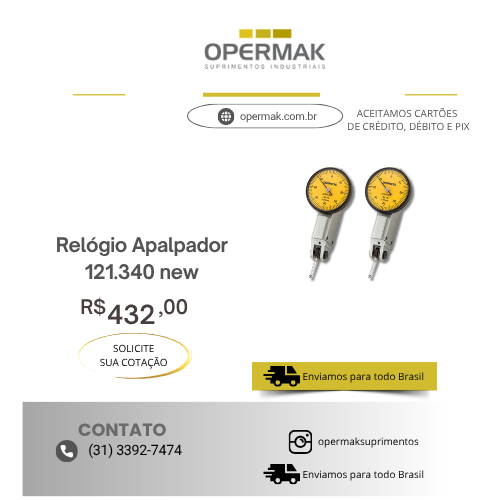 O Relógio Apalpador Opermak oferece alta precisão para medições em processos industriais, garantindo resultados confiáveis. Ideal para controle de qualidade, este instrumento robusto possibilita medições rápidas e seguras.